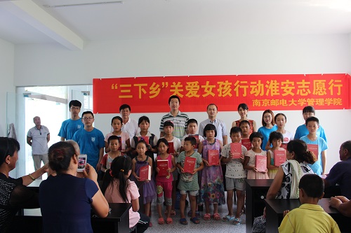 8月1日下午2时许,来自304am永利集团官网的志愿者团队,在淮安市吴城镇河滩村村委会举行了以“邮青春,邮梦想”为主题的关爱女孩志愿者活动捐赠仪式暨暑期帮扶支教夏令营开营仪式。