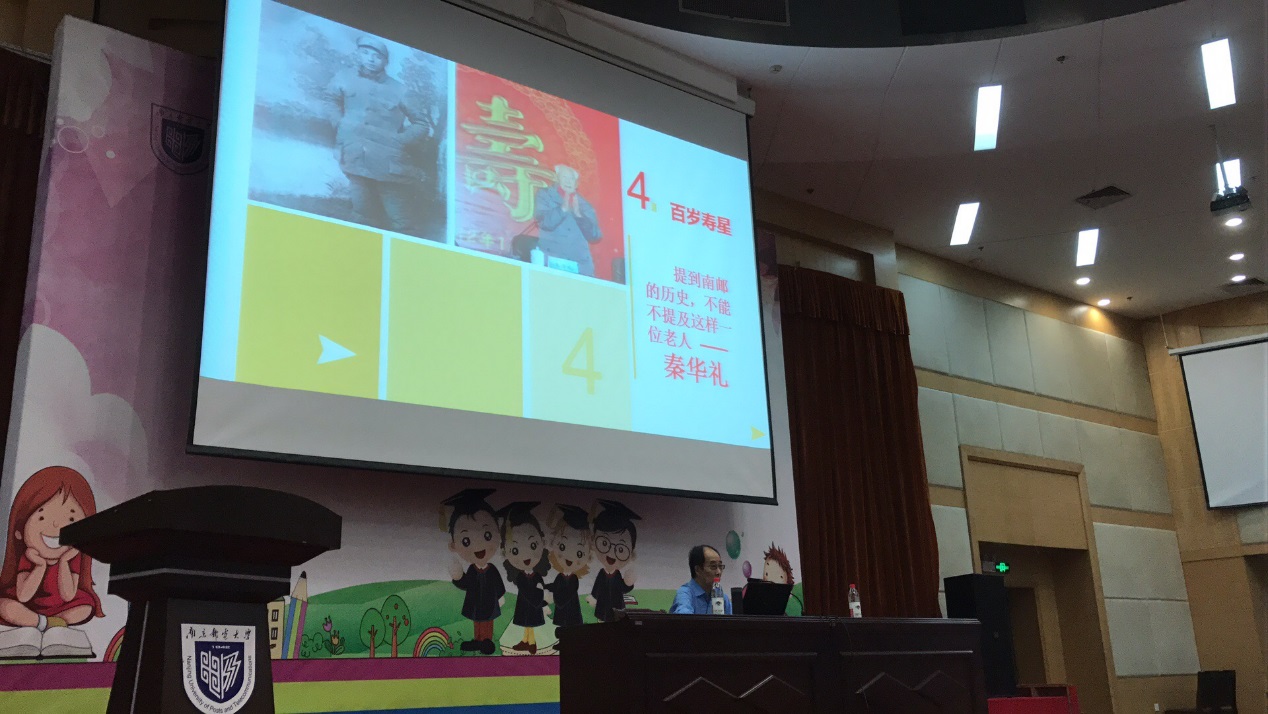 首先,颜福康教授对在座的2017级新生表示了诚挚的祝贺,欢迎他们加入南邮管院的大家庭,成为一名真正的柚子青年。本次讲座中颜老师从四月始源、红色印记、师出源悠、百岁寿星、援手同门、育英三叠、一脉根生、邮电情节、学子风采、飞鸿振翅等十个方面详细地为在场的新生介绍了南邮的前世今生。其中,颜老师特别向同学们介绍了学校的百岁寿星—秦华礼老书记,并且播放了老书记在去年央视开学第一课讲述老红军、老一辈通信人峥嵘岁月故事的视频,在秦老的亲切讲述中,新生们无不被南邮的红色精神和邮电情节感染,也对南邮多了更多的认同感。随后,颜福康教授通过对比国内各邮电高校的发展历程,让同学们了解到在一代代南邮人的不懈努力下,南邮从战邮培训班走向如今国内优秀综合性大学的成长之路。最后,颜教授展示了历年南邮学子们在各个不同的领域获得的突出成绩,也祝愿2017级的南邮学子学业有成,为母校再创辉煌。至此,本次校史讲座顺利结束。