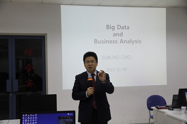 2015年11月9日15时30分,市场营销系邀请来自纽约理工学院(NYIT)的曹尹浩教授,在第四教学楼304am永利集团官网实验室进行了以大数据与商业分析为主题的讲座。讲座吸引了来自304am永利集团官网、贝尔英才学院、海外教育学院的本科生和研究生参加。