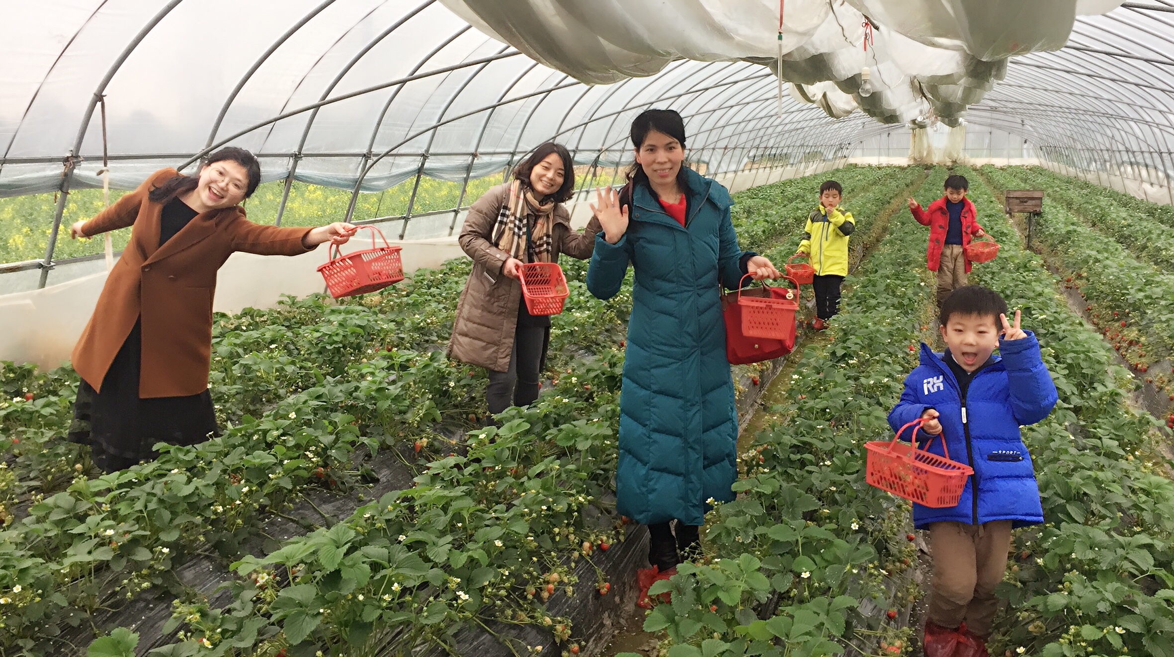 3月18日早晨8:30,大家在三牌楼校区图书馆前集合乘车,一个小时车程后,抵达溧水区大金山景区。在景区讲解员的陪同下,团队参观雷公馆、登高望远,射击打靶,观光东屏湖,乐趣横生。中午时分,品尝完健康、营养、美味的乡村午餐后,大家前往白马镇石头寨李巷村参观党性教育基地——红色李巷。最后,全体成员赴南京首个“全国农业旅游示范点”,省级农业科技示范园——傅家边农业生态科技园游览,园内山峦起伏,林木繁茂,十里梅岭、百种花木、千亩竹海、万亩茶果园。正值梅花盛开的时节,迷人的花香传递春的气息,让人陶醉,大家在花影藤风间纷纷拿出相机,尽情捕捉田园生活的闲适与恬淡。在一年一季的草莓成熟旺季时,大家纷纷采摘娇艳欲滴的草莓,更深地了解、感受自然,体验劳动的辛苦,享受采摘的乐趣。直到下午4:30返程时,大家依旧流连忘返,乐在其中。