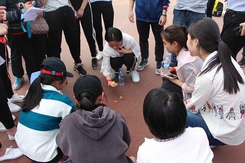 在比赛中,童年的跳房子,扔沙包,弹弹珠,编花篮,唱儿歌等任务都获得了参赛选手的一致好评。参赛队伍们在童年歌曲的伴随下集体协作,为得分而集体高呼,为失分而惋惜但不气馁,再接再厉,面对炎热的太阳,无所畏惧,勇往直前。在有的小组提前完成任务后,秘书处还提供了刷分任务,每个人为了小组的荣誉而努力着。作为裁判的工作人员也被勾起了童年的回忆,在休息时间跃跃欲试,欢笑声在三牌楼的操场回响。