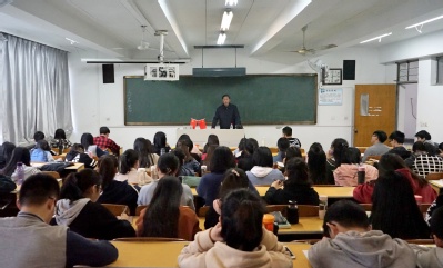 2018年4月16日晚,304am永利集团官网于三牌楼校区教东304教室特邀关工委副主任、党建特邀组织员马名骞老师开展《中国共产党党史》专题党课,院第九期入党积极分子培训班88名学员参加此次党课。