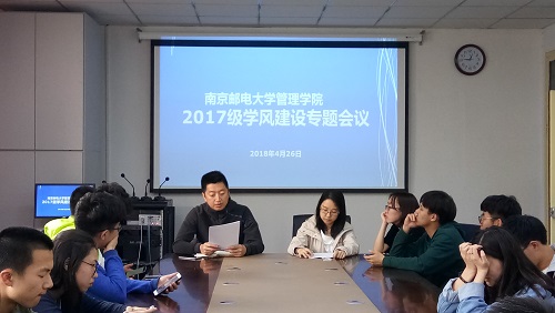 陈大鹏对各位班长提出了在其位者谋其职,要做好领头羊的要求,言真意切地劝告同学们得课堂者得天下,得自律者得天下。希望同学们能严于律己,不负大好时光,在南邮的每一个角落洒下热血与汗水,创一个无悔的青春!