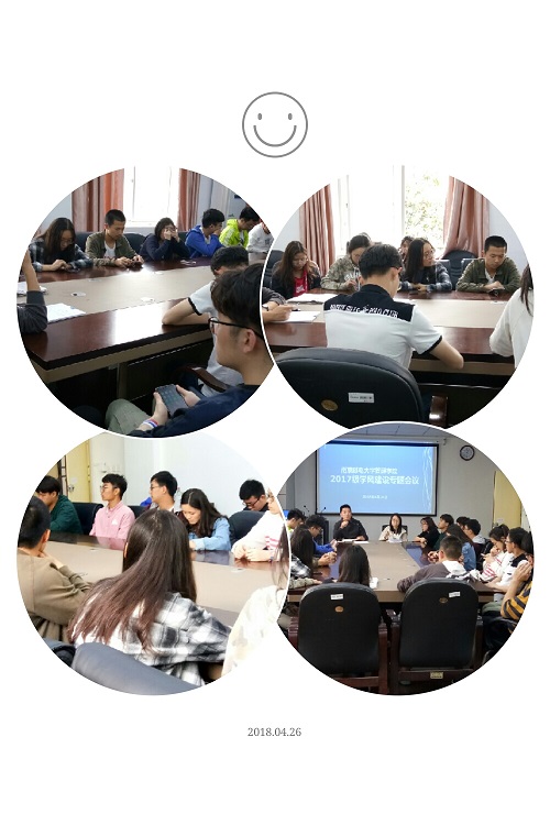 2018426号中午1230在有线楼306会议室召开304am永利集团官网2017级班长会议,该会议由辅导员陈大鹏,蔡珺主持,参加会议的有304am永利集团官网2017级班长及主席团部长,本次会议的主题为加强学风建设