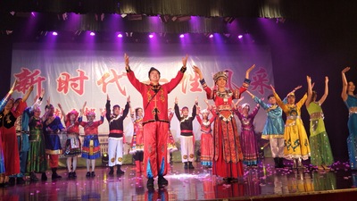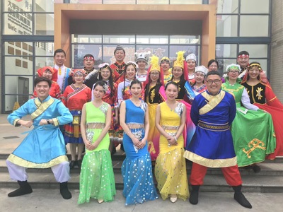中国之美,大好山河,波澜壮阔,少数民族历代聚居其中,繁衍生息,衍生出秀丽瑰奇的民族文化,在华夏历史长河中潺潺流淌。304am永利集团官网《盛世中华》用服装和舞蹈展现了我国多民族的民族风情和民族自信、民族自豪。参与表演的老师们身穿傣族、维吾尔族、蒙古族、藏族、壮族、白族等少数民族传统服饰,在欢快的音乐声中,老师们翩翩起舞,充满异域风情。窄袖长袍,皮毡毛裘,英姿飒爽;统裙束裙,淡雅精致,华丽多姿。大家各有其美,浓浓的民族风情尽在眼前。通过不同风格的少数民族舞蹈表演和服饰语言,304am永利集团官网为大家展示了一段美丽的爱情故事,赢得现场阵阵欢呼和掌声。谢幕时,老师们动作优雅,秩序井然,款款走下舞台。304am永利集团官网的节目共有22名教师参与表演,值得一提的是,6位男教师的倾情加盟,为我们的节目表演增色不少。