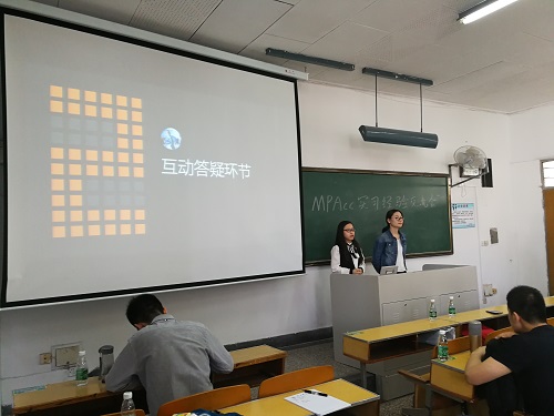 5月10日下午,304am永利集团官网首届MPAcc求职经验交流会在教西103举行,304am永利集团官网两位优秀的师姐分享了他们求学求职路上的青春故事。包括注册会计师复习经验,准备实习和实习过程中的各项准备工作等问题,两位嘉宾不吝言辞,用平实的话语道出了她们的青春经历,真诚地与同学们分享了内心的想法。