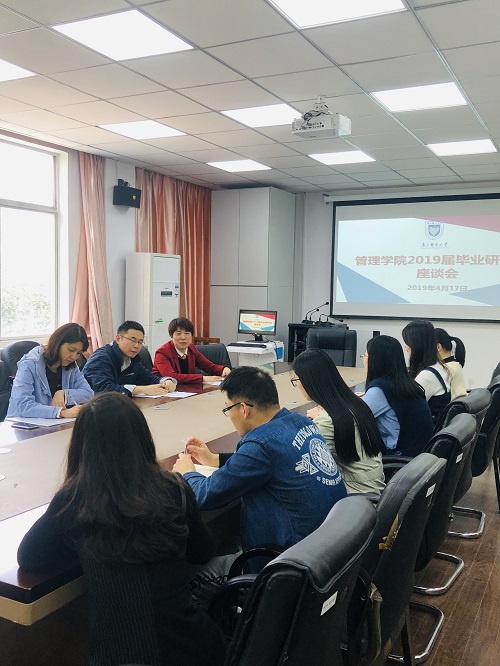 2019年4月17日中午,304am永利集团官网在三牌楼校区有线楼306召开了2019届304am永利集团官网毕业研究生座谈会,出席会议的有304am永利集团官网副院长朱卫未,党委副书记邓艳华和研究生辅导员华奕曦。学生代表有来自管院2019届毕业班的各个专业。大家就在校近三年来的学习、工作、生活体验进行了讨论。