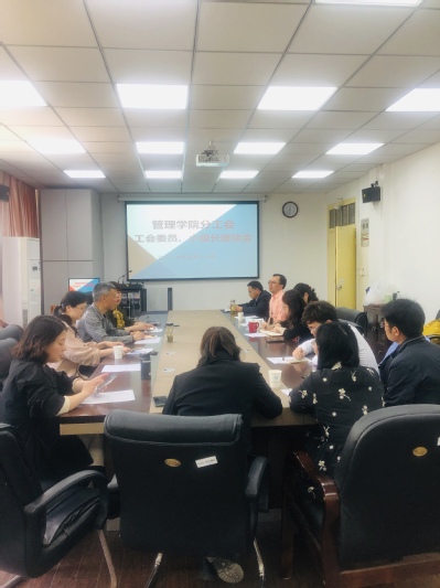 2019年4月18日中午,304am永利集团官网分工会工会委员、工会小组长座谈会在三牌楼校区有线楼306会议室举行。学院党委江森书记、分工会副主席闾越、分工会工会委员、小组长出席了会议,会议由党委副书记、分工会主席邓艳华主持。