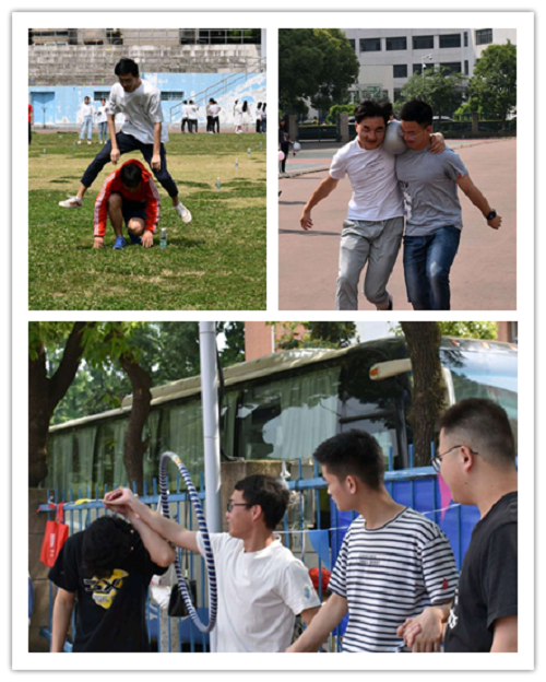 活动开始前,在刘老师与负责同学的带领下,大家进行了活动前热身运动。随后,所有同学随机分组,在负责同学的引导下开展各项活动。仙人指路,翻山越岭,传呼啦圈,八手八脚,二龙戏珠,摸石头过河,报纸站人……各队在趣味运动中释放激情,享受团队合作的乐趣。活动现场井然有序,气氛热烈。所有趣味运动进行完毕之后,全体人员进行最后的拔河比赛,同学们一齐拼搏的呐喊声再一次将活动推向了高潮。活动最后,主持人公布了每个队伍的成绩,全体人员在主席台前留影纪念。至此,本次活动圆满结束。