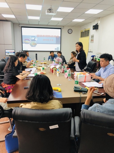 2019年5月6日下午,304am永利集团官网分工会在306会议室举行教职工生日蛋糕券团购咨询会,304am永利集团官网党委副书记、工会主席邓艳华和李淑娟、赵珺老师,其他分工会20余位代表与蛋糕供应商面对面洽谈。
