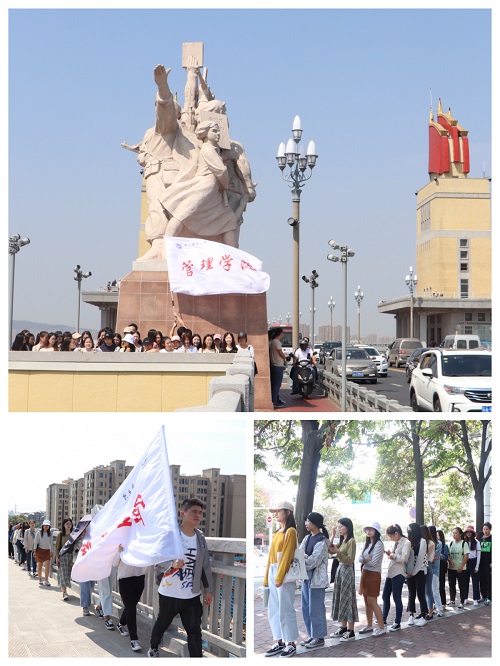 此次参观学习活动分为三部分。大家在大桥入口处集合后,由研三工商管理专业蔡特金同学为大家讲解大桥的建成与发展,特别是大桥对于南京、对于江苏以及对于中国的重大意义。然后是有奖竞答环节,蔡特金同学出题,其余同学举手回答,答对的同学都会得到精美礼品,大家都踊跃参与。最后所有同学陆续上桥,走了十几分钟引桥后便到了被列为“金陵四十八景”之一的大桥标志性建筑——桥头堡,桥头堡上高70米的三面红旗大型建筑气势雄伟,大家纷纷合影留念。走在桥上,每一步都能感受到历史的厚重感和革命前辈们艰苦奋斗、自强不息的精气神。站在桥上,可一览祖国壮丽山河!活动结束后所有同学都有序下桥。