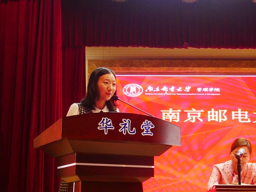 高年级学生代表、2017级工商管理专业蒋铭为为学弟学妹们提出了生活建议。培养一技之长,在大学时期明确自己的人生目标,为步入社会做出最全面的准备。