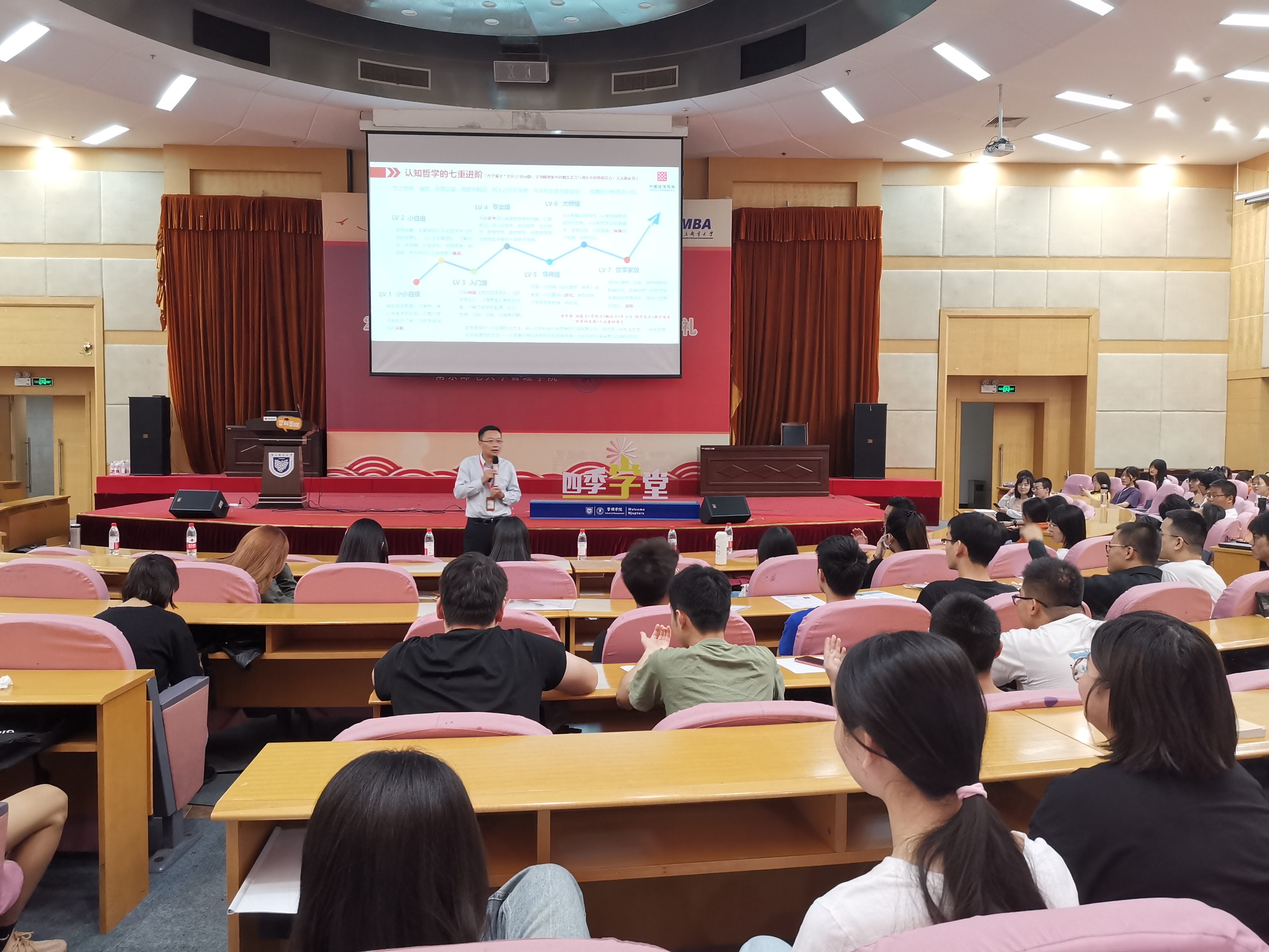 讲座开始前,报告厅座无虚席,同学们都表示对“职业规划与哲科思维”这一话题兴趣浓厚。本期讲座主要涉及中西文化差异、哲科思想起源、如何培养自己的哲科思维等内容,主讲嘉宾常勇首先讲述了自己对于中西文化差异的切身体会,指出当前我国青少年普遍存在缺乏哲科思维的问题,并以此展开哲科思维的相关话题。常勇先生告诉同学们,哲科思维是哲学思维和科学思维结合在一起的总称,也是唯心和唯物融合一体的思维,这一思维起源于古希腊,发展于文艺复兴时期。哲科思维的中心思想之一是破界,这对当代企业和个人的发展也至关重要,在独角兽企业迅猛发展的现在,行业与行业之间的壁垒逐渐透明化,而作为大学生更要有逻辑奇点下移的意识,打破知识边界促进认知提升,从而促进个人品牌形象的树立。