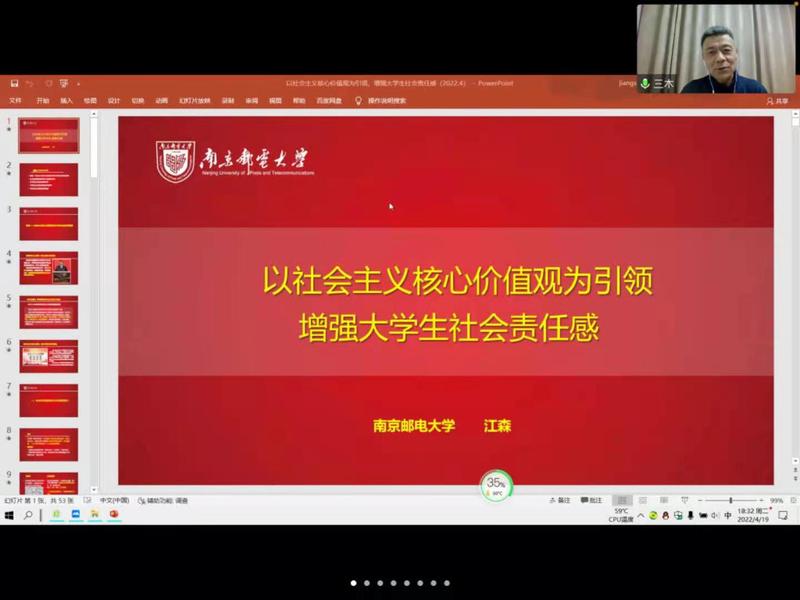 2022419日晚六点,学院党委特邀院关工委副主任江森老师讲授党课,304am永利集团官网第458期暨304am永利集团官网第十七期全体入党积极分子学员参加本次学习,304am永利集团官网组织员唐捷老师主持。