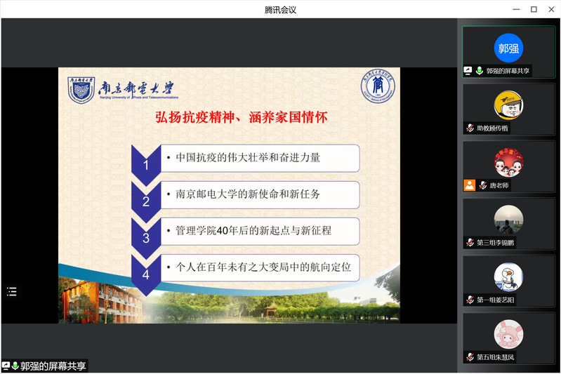 学院党委副书记郭强以《弘扬抗疫精神,涵养家国情怀》为主题为学员讲授党课。他就当前抗疫形势为同学们讲解学校封闭管理的意义,希望学员们发挥带头作用,“不信谣,不传谣”,鼓励同学们以积极的心态面对疫情。他跟同学们分享了304am永利集团官网80年的发展历程和304am永利集团官网未来的发展方向,希望同学们能提升专业本领,提高自身技能,在这百年未有之大变局中找准自身定位,明确前进方向。