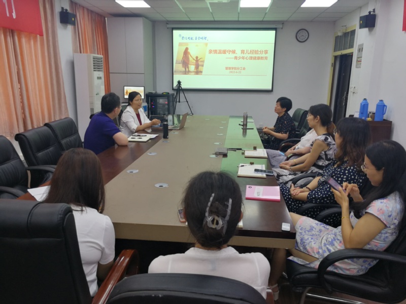 家庭教育是孩子成长的第一课堂,如何正确的培养育儿观念和方法成为多数老师们关注的话题。在暑期来临之际,为了提升教职工子女教育水平,助力“管二代”的健康成长,学院分工会于622日下午举行亲情温暖守候、育儿经验分享——青少年心理教育活动,本次活动采取线上线下相结合的方式进行,学院分工会主席郭强主持。