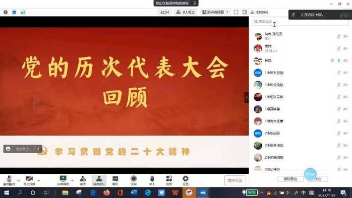 112日下午,学院党委书记钟凯老师以线上方式为第十八期入党积极分子党校培训班全体学员讲授党的二十大精神专题党课。唐捷老师主持本次党课。