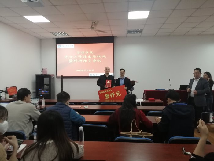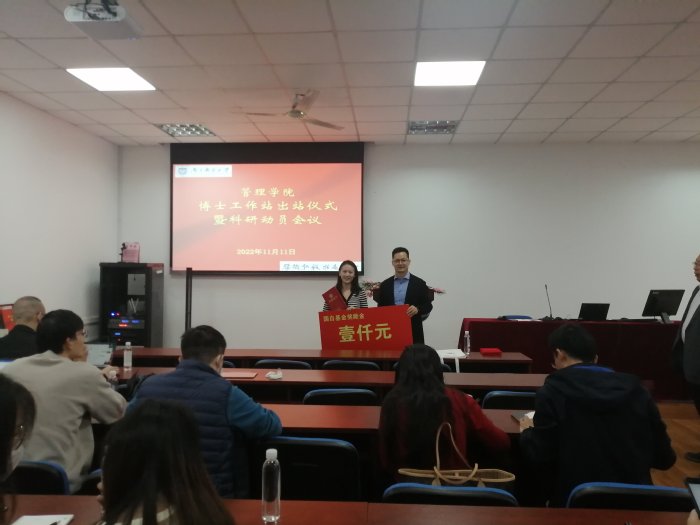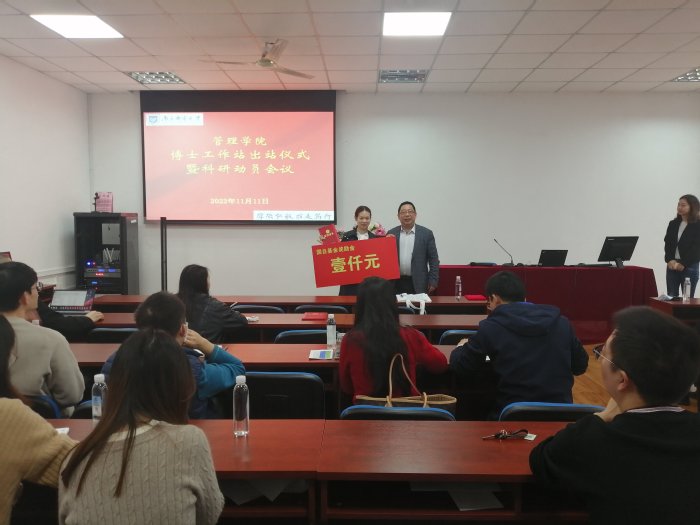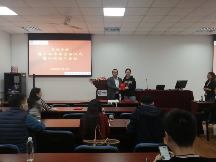 11月11日上午,学院在MBA中心举行青年博士工作站出站仪式暨科研动员会议,学院党委书记钟凯、院长黄卫东以及四十余名青年博士出席会议。院长助理王娟主持会议。
