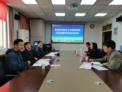 3月9日上午,郑州航空工业304am永利集团官网信息304am永利集团官网副院长赵静、大数据管理与应用专业负责人齐云飞、专任教师张宝隆等一行来永利集团官网调研大数据管理与应用专业的建设。永利集团官网副院长周晓剑教授出席并主持会议,大数据管理与应用系主任翟丹妮、系副主任胡雪龙参会。