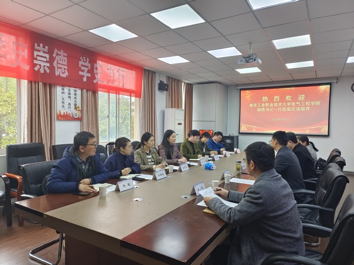 4月6日上午,南京工业职业技术大学电气工程学院书记杨燕、副书记王静等一行来永利集团官网交流座谈,座谈会在三牌楼校区有线楼306会议室举行,永利集团官网党委书记钟凯、副书记郭强等老师参加座谈交流。