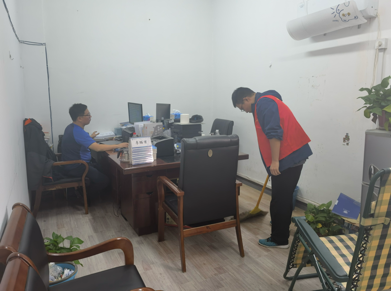 同学们在活动过程中,针对教研室各个区域,将地面清扫拖净,不留任何死角,做到无纸屑、果壳、碎末、烟蒂、口香糖等废弃物;门窗、桌椅、文件柜、电脑、电器等设备设施擦拭干净,做到无灰尘,无污渍;及时将机内垃圾筒的纸清空;室内墙面保持干净整洁,四周墙壁及其附属物、装饰品无蜘蛛网、浮尘;室内物品摆放有序;垃圾篓里垃圾及时清倒;拖布、扫把等卫生用品使用完毕后需清洗干净,摆放整齐有序。
