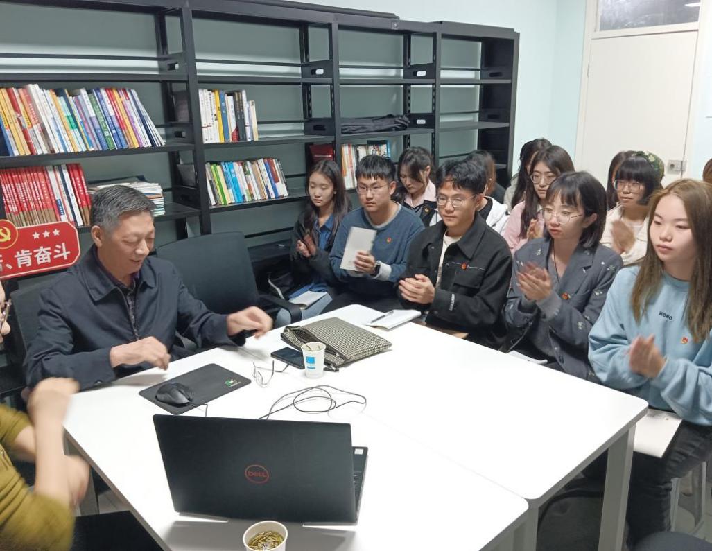 随后,孔宪禹老师通过自己的老党员经历,向同学们讲述了自己一路走来的心路历程,并分享了其从求学到任教过程中一直遵循的理想信念。