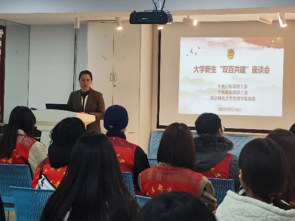 11月15日下午,在学院团委的指导下,永利集团官网第171期菁英人才班学员和30余名青年志愿者积极参与了由宁海路街道团委与中央门街道团工委联合开展的“双百共建”社区行志愿,进行了“看一家高新企业”“走一回红色地标”“讲一堂青春思政课”“办一次政策推介会”“开一场座谈交流会”“做一次志愿服务”等“六个一”活动。