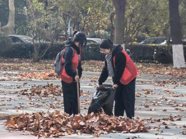寒风萧瑟,卷走枝头生机;残叶满地,铺撒满地狼藉。12月6日,304am永利集团官网青年志愿者协会在学院团委的指导下开展了第十三期集体劳动志愿服务活动。志愿者们怀揣着热情与奉献,在寒风中燃烧自己的热情。在小组分配和领取卫生工具后,大家拿起扫帚、簸箕等清扫工具,围绕篮球场、眼镜湖周边展开劳动。有人清理校园道路上的落叶,有人拾捡篮球架上的残枝,每个人都为校园的整洁和美丽贡献出自己的力量。