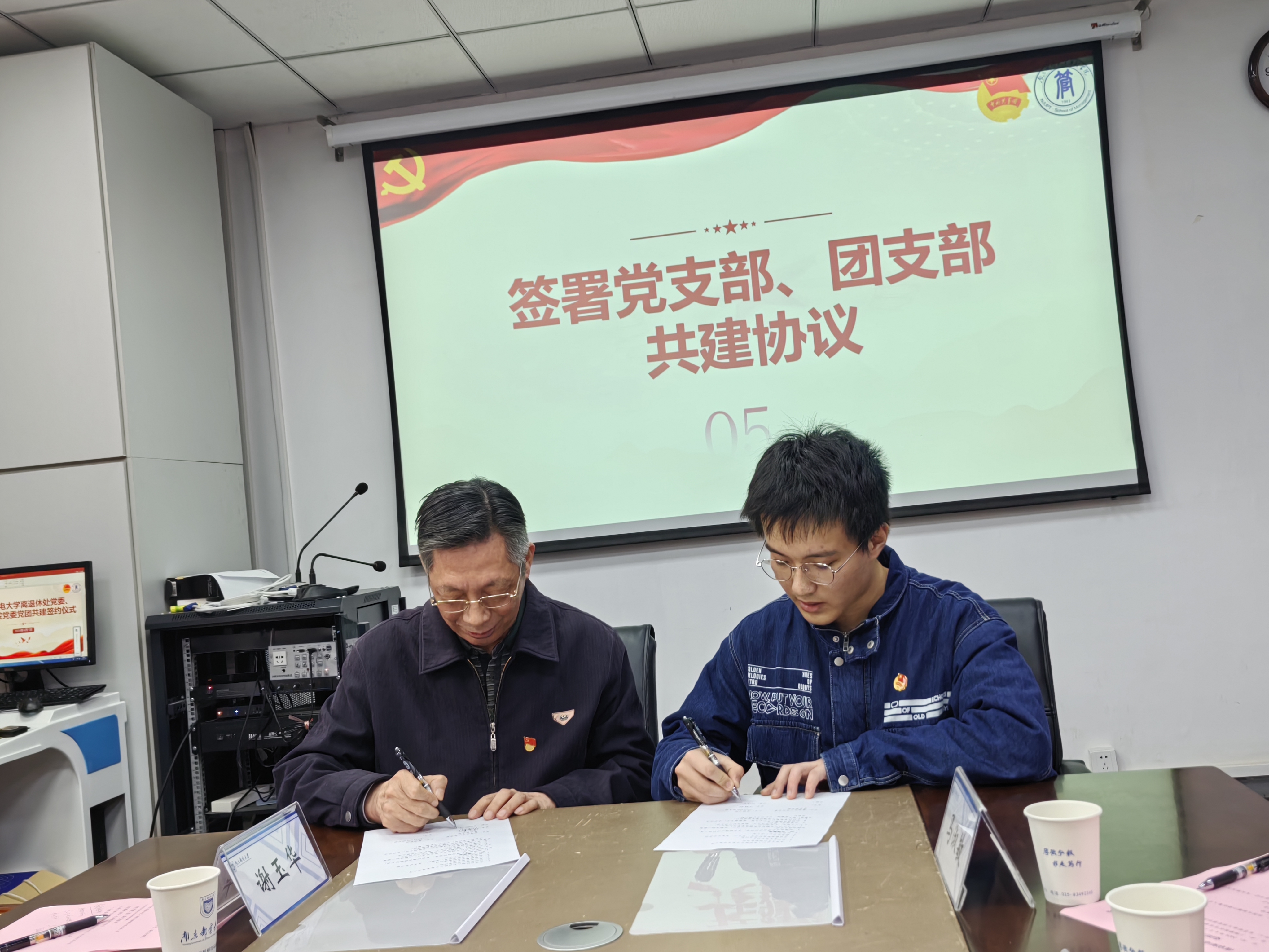 退休第五党支部书记孔宪禹老师和304am永利集团官网B231300班团支部书记汪喆明同学分别介绍了各自支部的优势和特点,并表示要不忘初心,牢记使命,永保优秀党员和先进青年团员的本色,通过共建共创活动,能够在思想上,行动上得到更好的锻炼和提高,使各自支部的标准化建设更上一层楼。两位支部书记在与会人员见证下签署了共建协议。