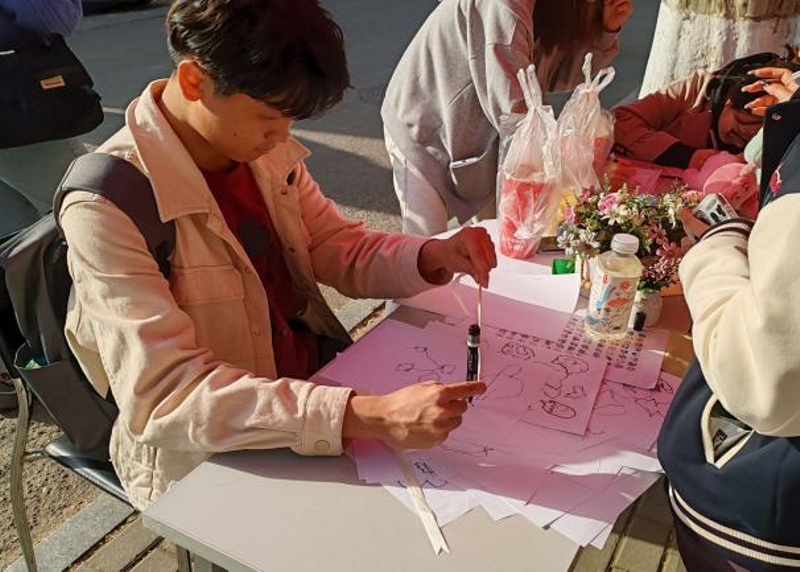 活动前期,利用多形式多手段的宣传,营造良好的校园心理文化氛围。线上线下相结合,提高同学们的参与兴趣与积极性。本次活动的主要内容包括三部分:第一,“投其所好,壶中有趣”——通过投壶来释放心中的压力以及负面情绪;第二,“悬空作画”——用细线系笔描绘出当下心情,同时还能提高专注力;第三,记录“放飞烦恼”的一瞬间——将自己的烦恼折成纸飞机,松手亦释然;第四,“时光邮局”——写一封给未来自己的信。活动在三牌楼校区开展,开始第一天,总计两百五十余人次参与,以素质拓展游戏为载体,在轻松愉悦的氛围下,既让同学们身心得到放松,也让同学们为了共同目标团结在一起,不仅使得同学们收获了友谊和喜悦,又能够更好的关注自我,关注心灵成长,提高心理素质。