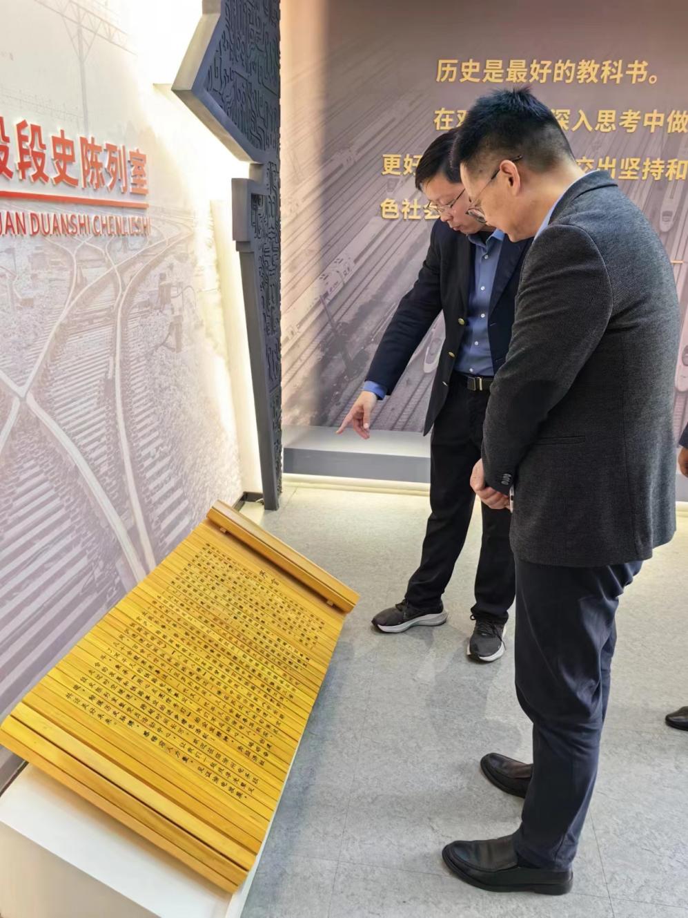 钟凯书记一行人首先来到了徐州电务段段史展览馆,参观了徐州电务段的历史沿革和发展变迁,感受了中国铁路的飞速发展和铁路人的默默奉献。在座谈交流中,马磊代表徐州电务段对钟凯一行的来访表示热烈欢迎,充分肯定了304am永利集团官网在学科建设、学生培养方面的成效,并介绍了南邮毕业生在段内目前的工作现状和表现。钟凯从学校历史、科研发展和人才培养等方面进行了介绍,并希望有更多南邮学子可以有机会进入段内工作,为国家的铁路事业做出自己的贡献。