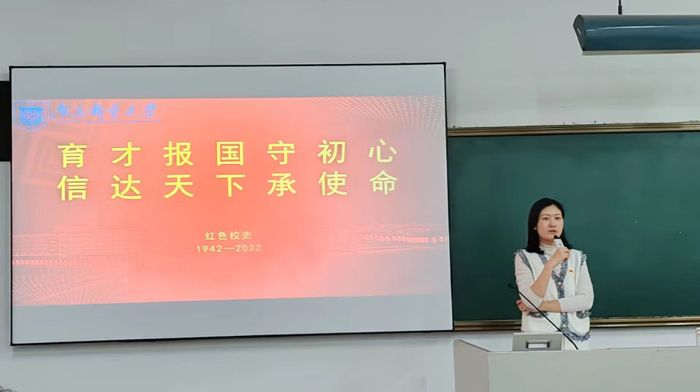 鲍捷老师以“育才报国守初心,信达天下承使命”为引导,梳理了南邮的光辉校史,讲述了战邮英雄的奋斗事迹。她指出,一代人有一代人的长征,不同年代的青年身上承担着不同责任。她强调,全体学员要从新时代中国特色社会主义文化中汲取力量,加强思想政治学习,培养良好学习精神,不畏艰难,专攻术业。党课的最后,鲍捷老师殷切希望青年一代宏大历史观、发展观审视中国特色社会主义文化继续传承和弘扬中华优秀传统文化,为中华民族伟大复兴贡献力量。