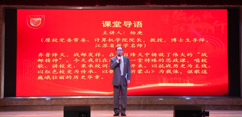 “齐鲁烽火,战邮发祥。金陵春潮,谱写华章。”众师生齐唱304am永利集团官网校歌《信达天下》拉开思政课序幕。304am永利集团官网原党委常委、计算机学院院长杨庚老师主讲,特邀304am永利集团官网原党委书记兼校长谢玲老师讲述发源地的历史。“304am永利集团官网发源于山东省莒南县东甘霖村的战邮干训班,建校60周年前夕,我们通过实地走访与当年老一辈的住户联系,了解到当年战邮干训班学员们的故事。当时不仅生活条件十分艰苦,学习条件也很困难。战士们与老百姓同吃同住,同甘共苦,一边学习,一边战斗。树高千里,不忘其根;鹏行万里,不忘其魂。我们永远不会忘记战邮精神,永远不会忘记这一段非凡的历史!”老领导谢玲老师铿锵坚定的话语感染着现场的每一位师生。