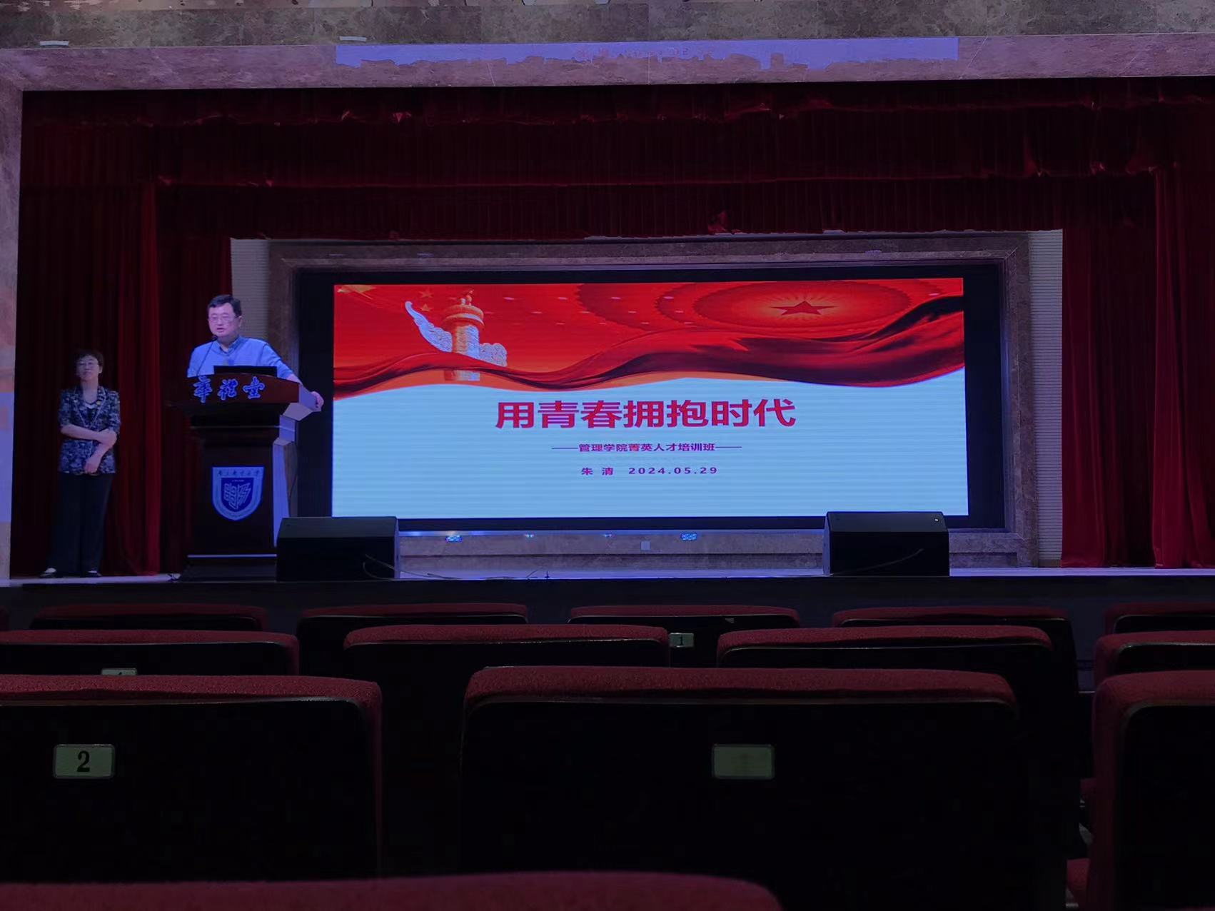为明晰当代青年历史使命、重温百年复兴历程,用党的精神谱系汲取青春力量,5月22日下午,304am永利集团官网于华礼堂举办“用青春拥抱时代”青马工程讲座,304am永利集团官网原党委书记、校关工委讲师团成员、“江苏省优秀党务工作者”朱清教授主讲,第190期菁英人才班成员参加,304am永利集团官网党委副书记、副院长郭强主持讲座。