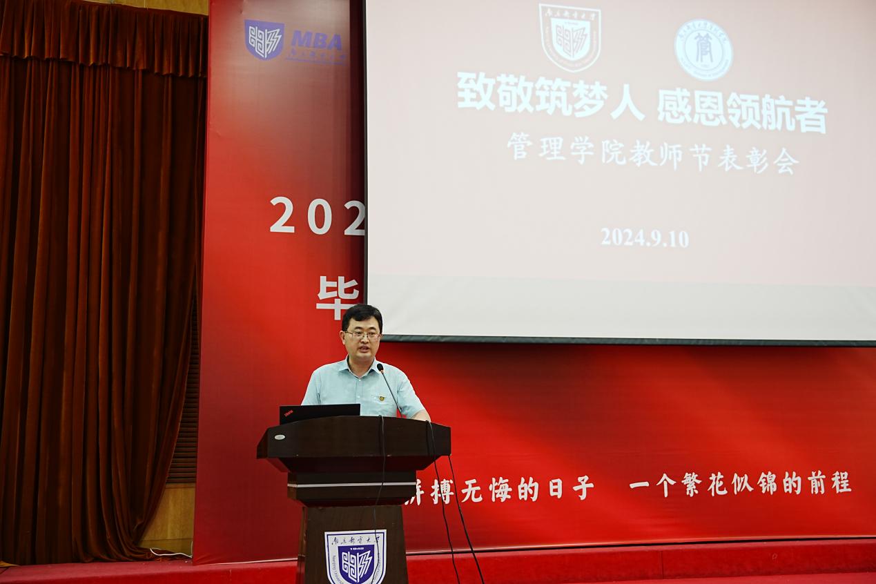 金秋送爽,硕果飘香。为弘扬中华民族尊师重教的优良传统,引导全院学生感念师恩、礼敬教师,营造浓厚的教师节氛围,在第40个教师节来临之际,永利集团官网于9月10日下午在科学会堂二楼报告厅举行教师节庆祝大会。国任财产保险股份有限公司江苏分公司业务总监杨佳伟、304am永利集团官网党委书记钟凯、学院副院长周晓剑及教师代表、辅导员、新生班主任、研究生和本科代表参加会议。会议由304am永利集团官网党委副书记、副院长郭强主持。