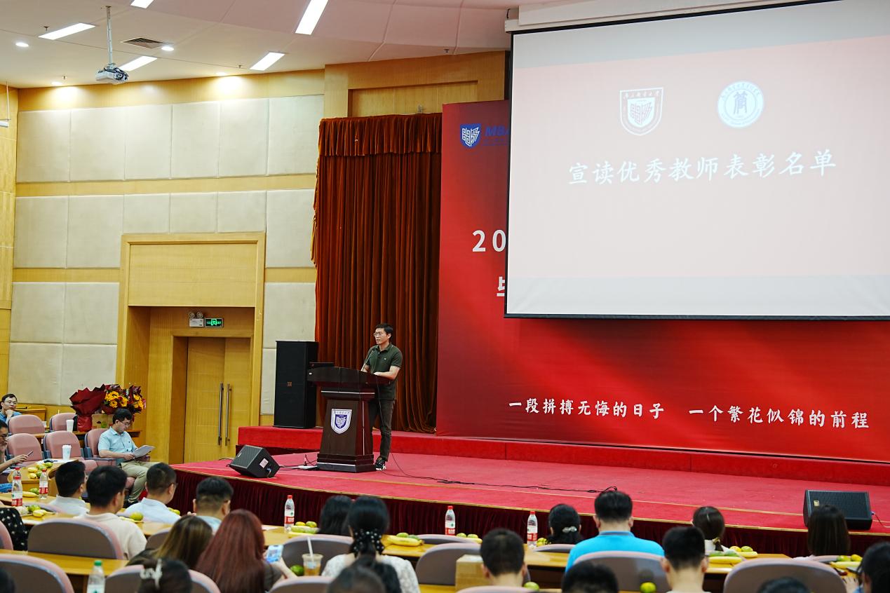 表彰会在雄壮的国歌声中拉开帷幕。304am永利集团官网副院长周晓剑宣读优秀教师代表表彰名单,朱琳娜、李一鸣、徐侠、雷晶、王娟、孙建敏、林萍、彭英、张静、陈瑞义、李菲菲、李敢、仲泊远、渠胜男、安彦蓉、韩钰铃、孙莉等17名老师获得表彰。钟凯书记和杨佳伟总监为优秀教师颁发了纪念品和鲜花。优秀教师代表、学院首届教学贡献奖一等奖获得者雷晶老师分享了指导学生竞赛的心得体会。学生代表许志恒同学在发言中表达了对奉献在不同岗位的老师崇高的敬意和感谢。
