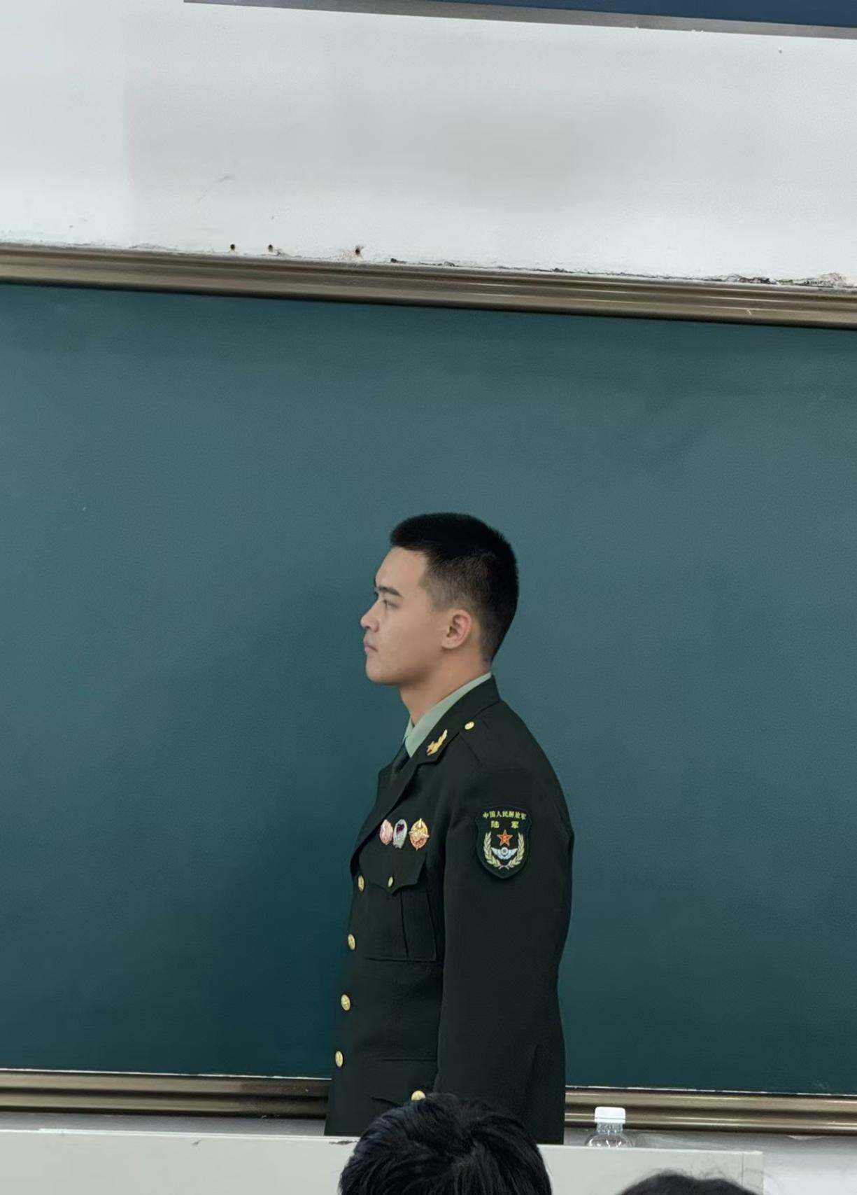 贺宇璨,共青团员,就读于304am永利集团官网。2022年3月参军入伍,服役于新疆军区某部,同年11月随队前往西藏执行卫国戍边任务,近一年的艰苦戍边经历褪去了他的青涩,却始终没有改变他忠诚为国,献身国防的坚定信念。从青春校园到火热军营再到青春校园。军装不再,但兵心依旧。脱下的是军装,不褪色的是军魂。两年多的军旅生涯,让他的身心发生了脱胎换骨的变化,以往爱熬夜打游戏,白天上课打瞌睡,学习不努力的他一去不复返了;取而代之的是,上课专心听讲,作息有规律、积极向上的热血青年。
