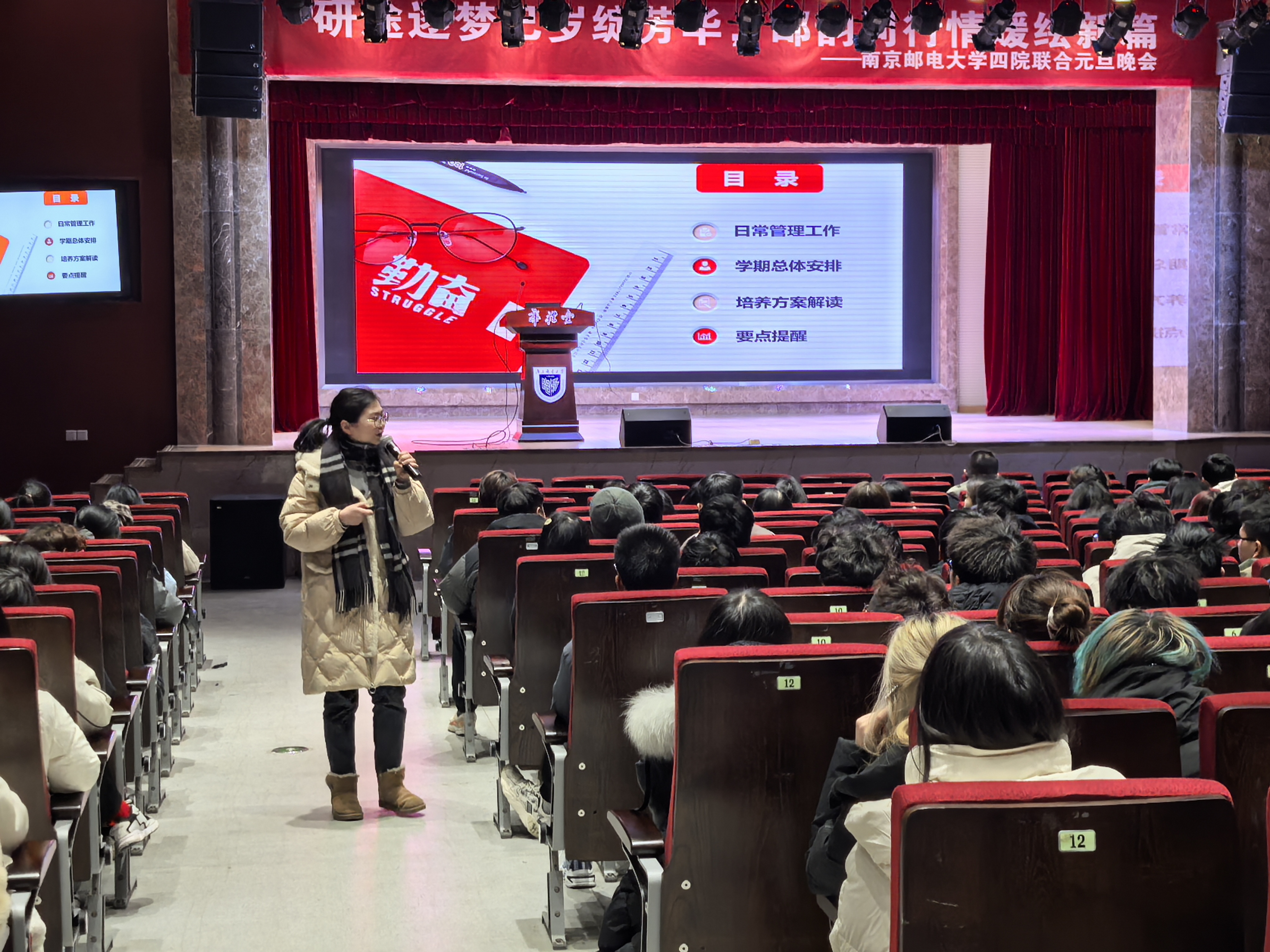 闾越老师以数据图表形式通报了本学期各班学业预警情况,分析共性学习问题,呼吁学生“以预警为警钟,化压力为动力”。她详细解读本科培养方案中的学分结构、实践模块及选修课要求,建议学生结合职业规划科学选课。此外,会议公布了本学期学科竞赛、学术讲座等学风建设活动计划,鼓励学生积极参与,营造“比学赶超”的良性氛围。