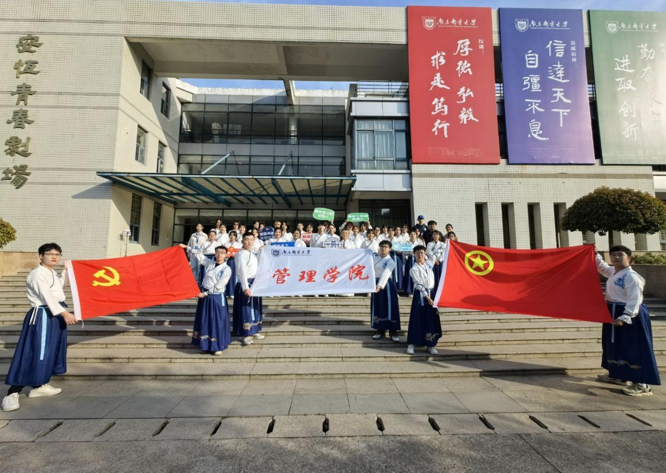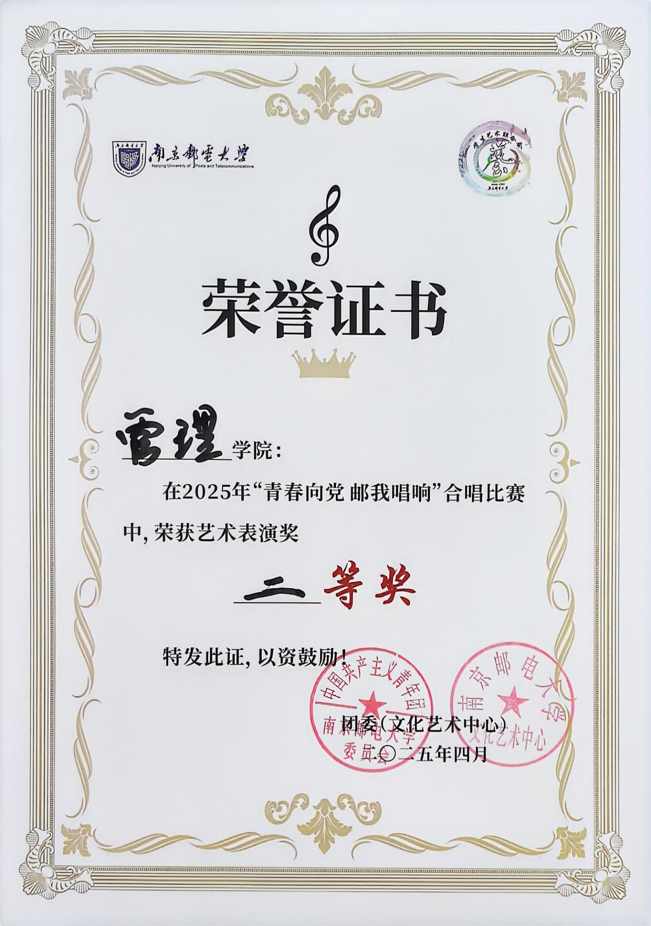4月23日下午,我校举行“青春向党 邮我唱响”合唱比赛。304am永利集团官网师生凭借一曲深情激昂的《问月》,在20支队伍中脱颖而出,斩获二等奖第一名的佳绩!学院党委书记葛敏,学院党委副书记、副院长郭强亲临指导并参加演出。