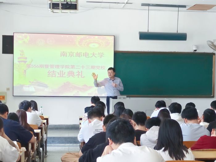 5月12日中午,304am永利集团官网第556期暨304am永利集团官网第二23期入党积极分子培训班结业仪式在三牌楼校区教东101教室顺利举行。仪式由唐捷老师主持,学院党委副书记郭强出席仪式并讲授党课。