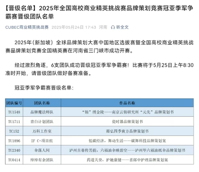 自2024年10月启动以来,经过7个月的精心筹备,决赛于今年5月举行。“品牌魔法师”队是我校本次比赛唯一一组晋级现场赛的队伍。经过5月24日现场小组赛的激烈角逐,最终从入围现场赛的64支国家一等奖队伍中晋级6强,参与次日的冠亚季军公开争霸赛。