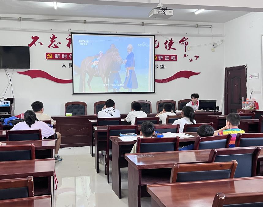 上午九点,阳光正好。队员先为孩子们播放央视纪录片《传承》精选片段:非遗艺人指尖上的千年技艺,在镜头下一一苏醒。“原来糖画不只是甜甜的味道,还是文化的味道!”孩子们睁大眼睛,发出阵阵惊叹。影片余温未散,实践团成员们和孩子一起参加了“守护花季行,自护有法宝”宣讲活动。在活动中,检察官姐姐用情景动画、互动问答,把“如何拒绝陌生人的不当触碰”“背心裤衩覆盖的地方是隐私”等知识,拆解成易懂的“三不要”口诀:“不要慌、不要藏、不要沉默!”“如果有人摸你隐私部位,该怎么办?”——“大声说不!立刻告诉爸爸妈妈!”强强抢答完,还不忘示范“拒绝动作”:双手交叉护胸、大声喊“不”。童声稚嫩,却铿锵有力,这一刻,安全的种子已悄悄发芽。 宣讲结束,队员给孩子们留出“静心时段”。他们伏案赶写暑假作业,偶尔抬头问一句“哥哥,这道数学题怎么做?”笔尖沙沙,与窗外蝉鸣合奏成夏日小调。
