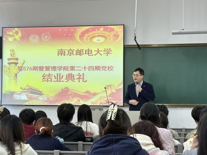 典礼最后,郭强老师带来本期培训班党课最后一讲。他强调,党课学习具有重大的意义,一是提升理论学习,弥补部分学生对党的认知短板;二是加强实践赋能,结合中国科技发展成就,倡导脚踏实地、杜绝空谈;三是深化锤炼党性,深刻把握党的人民性本质,始终将人民利益置于首位。他将学员们比作“管院衣领”,要求大家坚守纪律底线,不触碰违规违纪红线,以模范行动展现管院形象,主动担当奉献,用实际行动诠释青年担当。