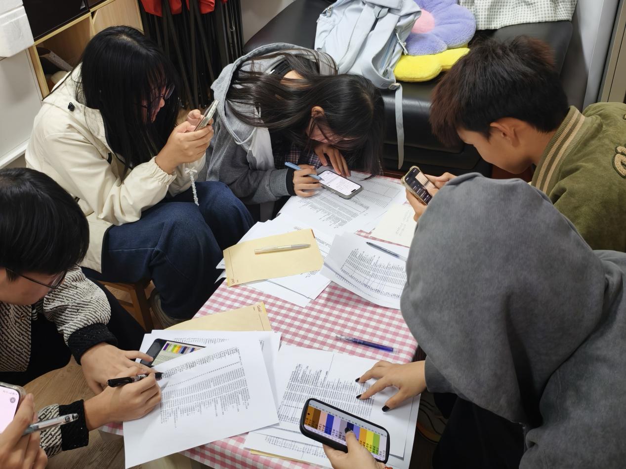 11 月 11 日晚,天色渐渐暗了下来,心理健康部活动室的灯光却亮得格外暖,成了冬夜里让人安心的小角落。社团成员们围坐在一起,一边讨论一边说笑,氛围热闹又融洽。大家对着报名表反复核对、仔细调整,一点点敲定每一组搭配,认真的模样里满是用心。最终确定的 16 组配对名单顺利存档,这份凝聚着大家努力的结果,也让接下来的相遇有了期待。