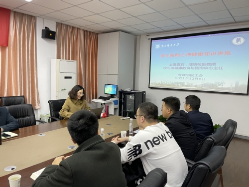 为关心青年教师的身心健康,缓解心理压力,树立乐观向上、健康阳光的积极心态,增进教师对心理健康知识的了解, 12月8日下午,304am永利集团官网心理健康教育与咨询中心主任陆晓花副教授为永利集团官网青年教师带来了一场生动的心理健康知识讲座。