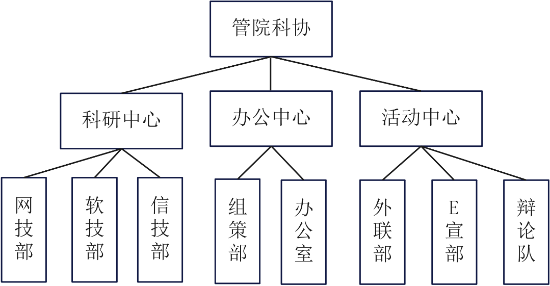 其中,管院科协设主席一人,负责各部门协调与各类活动的组织安排;副主席两人,管理社团内人员与规章制度以及财务报账工作;另设主任三人,分别管理科研中心、办公中心、活动中心内各项事务。