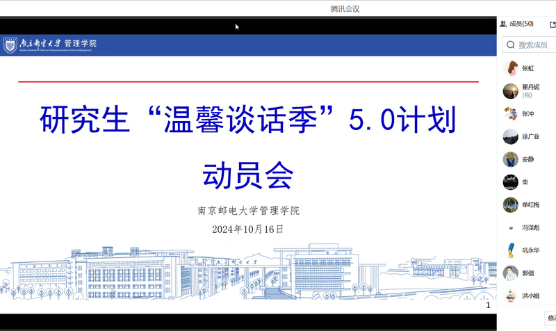 2024年10月16日,学院线上召开研究生温馨谈话季动员会。学院副院长张冲,党委副书记郭强,学院所有研究生导师出席会议,会议由张冲主持。